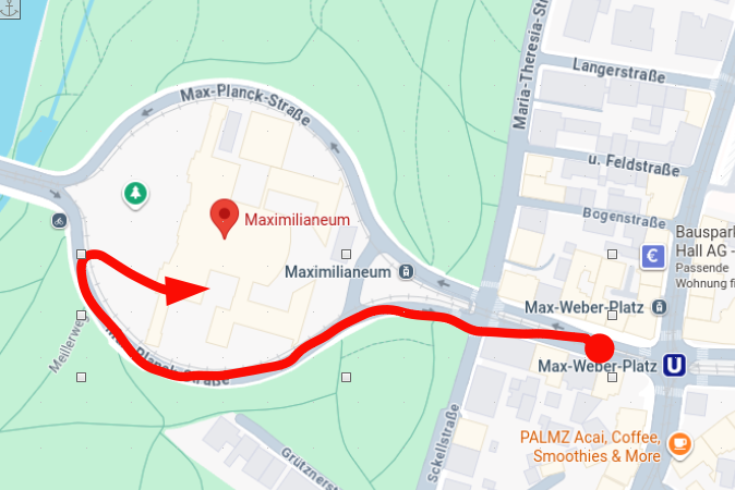 Am besten kommt man öffentlich mit der U-Bahn (U4/U5) Max-Weber Platz hin.