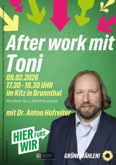 Am Montag, 9. Februar kommt Toni Hofreiter zu uns nach Brunnthal. Es gibt die Möglichkeit mit ihm die brennenden Fragen unserer Zeit zu besprechen. Er ist aber auch ein alter Hase, der sich bei kommunalen Fragen, wie auch bei Fragen des Landkreises bestens auskennt!